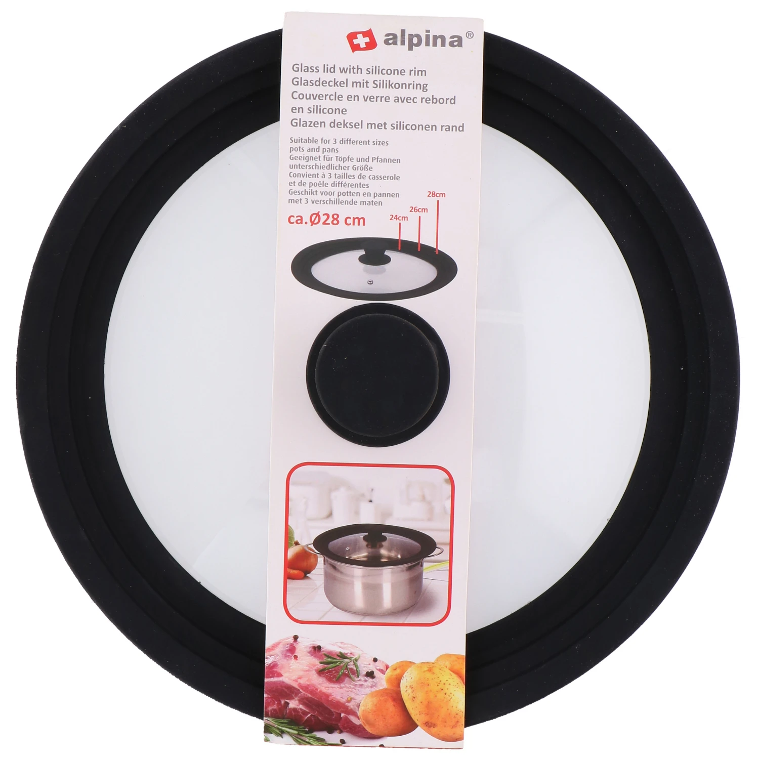 Alpina Deksel 28 Cm; Glas Met Siliconen Rand