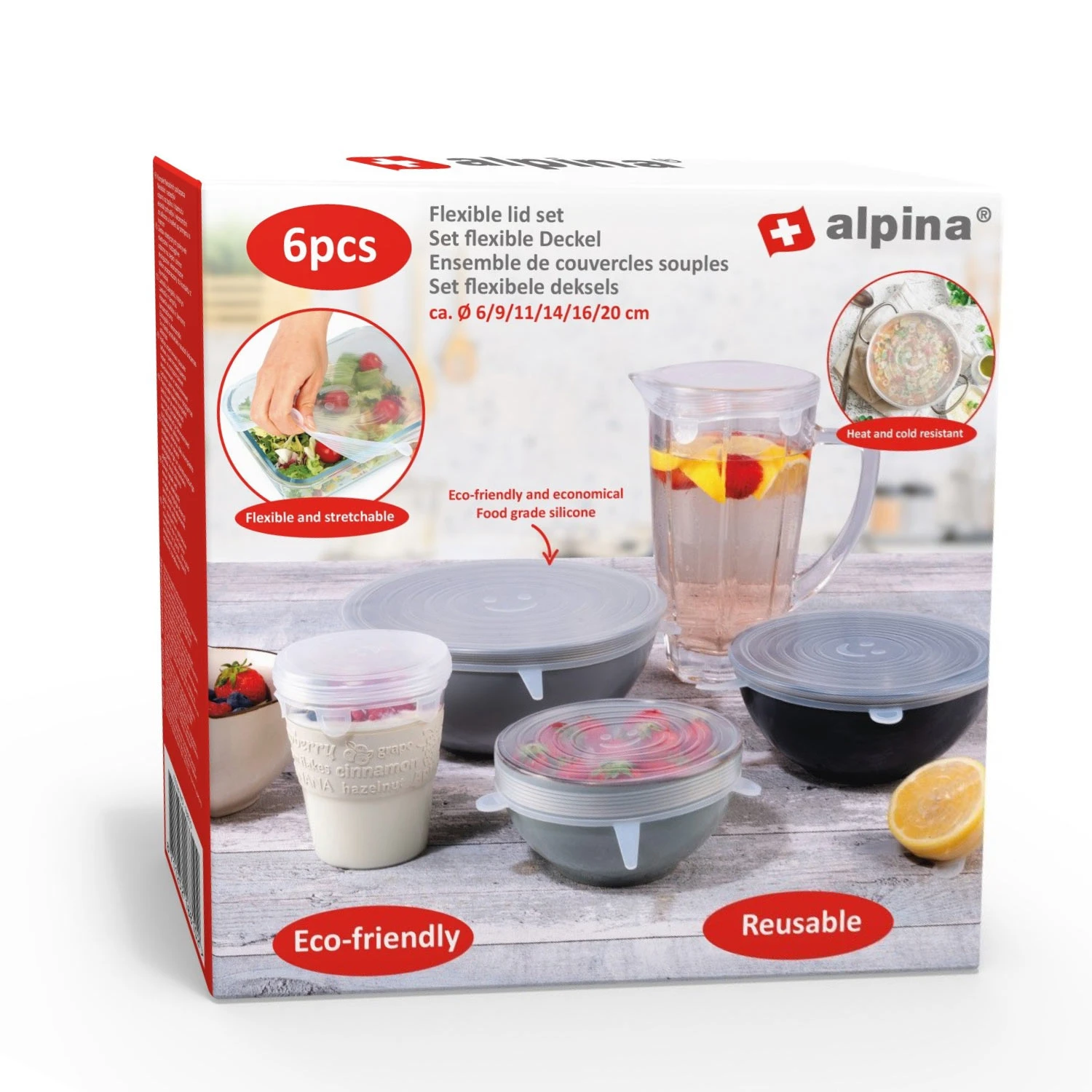 Alpina Herbruikbare Siliconen Deksels 6 Stuks Diameter 6/9/11/14/16/20 Cm